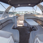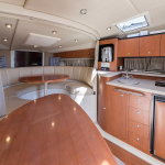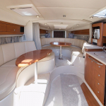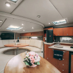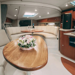 Катер «Эфир» создан для динамичных водных прогулок и необычных фотографий. Судно оборудовано современными и комфортными креслами и мягкими диванами, обшитыми белой кожей, так же имеется несколько удобных деревянных столиков. На борту есть всё необходимое для комфортного путешествия: удобная кухня, уборная с раковиной. Для плохой погоды и ночных прогулок предусмотрены тёплые и мягкие пледы. Благодаря своим габаритам скоростной катер «Эфир» может с комфортом принять на борт до 10 человек. Современная акустическая система, установленная на судне, позволит вам путешествовать под любимую музыку. Позвольте себе увлекательный отдых на воде, и ваше торжество станет неповторимым, а фотографии и видеосюжеты будут радовать еще долгие годы!