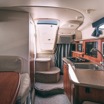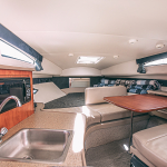 В планах шумная вечеринка? Вам тоже сюда! Красивый дизайнерский интерьер в белых тонах включает удобные диваны и столик. Также имеется миниатюрная кухня, на которой можно приготовить чай или кофе. Наличие туалета позволит находиться на воде хоть целый день. А мощная аудиосистема заглушит посторонние звуки любимыми мелодиями.