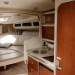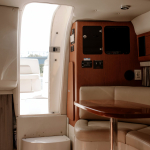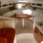 Отдыхающим предлагаются 2 зоны отдыха: открытая площадка с удобными скамьями на корме и каюта с 2 спальными местами в носовой части катера. На случай непогоды предусмотрен тент, надежно защищающий пассажиров от дождя, ветра и волнения. На судне имеются гальюн, рундуки для хранения вещей, кулер для охлаждения напитков, питьевая вода. Для удобства купальщиков есть специальная выкидная лесенка, позволяющая легко спускаться в море и возвращаться на борт.
