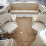 Светлый, современный интерьер, выполненные с использованием лучших натуральных материалов, дерева и кожи, оправдает ваши самые смелые ожидания. Для защиты от непредвиденного дождя на борту лодки предусмотрен тент, под которым вы сможете укрыться от непогоды, также вы всегда сможете укутаться в уютные и теплые пледы. Для создания настроения вам, конечно же понадобится мощная аудиосистема, и она тоже здесь есть. Вы сможете подключить ваши любимые композиции с удобного вам носителя.