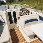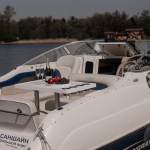 На борту «Саншайн», есть все необходимое для вашего комфортного времяпрепровождения. Катер оборудован тентом, на случай непогоды или прогулок в вечернее и ночное время, также на катере всегда есть в наличии мягкие и теплые пледы. На носу есть удобные мягкие, кожаные диваны, в середине катера удобный столик для напитков, на задней части удобный спуск к воде, для купания в финском заливе. На борту установлена современная аудиосистема, что бы вы могли подобрать подходящие музыкальное сопровождение для вашей прогулки. Получайте заряд положительных эмоций и отдыхайте с комфортом!