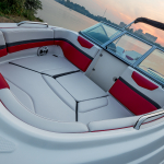 На борту катера «Sea Doo Challenger», есть все необходимое, для комфортного время препровождения. Есть две зоны отдыха, на корме и на носу картера. В каждой зоне, есть кожаные белоснежные диваны с красными вставками, что делает дизайн скоростного катера, еще более стильным и роскошным. Вся территория кокпита, покрыта удобным ковровым покрытием. Салон имеет систему обогрева, а на борту всегда есть теплые и мягкие пледы. Катер оборудован тентом, так что погода не испортит ваш отдых. На борту установлена современная аудиосистема, что бы вы могли подобрать под себя музыкальное сопровождение, для вашей водной прогулки. Позвольте себе отдых, который запомниться вам, потрясающими впечатлениями!