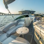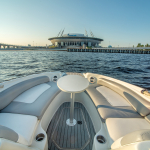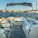 На борту есть все необходимое для удобного проведения свободного времени. Комфортные диваны, место для хранения личных вещей и просторный диван в носу судна. Тент от непогоды и обогрев салона, позволят отдыхать в любое время суток и в любую погоду. Вечеринка сопровождается музыкой благодаря встроенной аудиосистеме. Закажите катер «Sea Ray» и получите надежный и безопасный отдых.