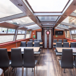 Крытый салон с большими окнами и прозрачной крышей идеально подходит для организации банкета, фуршета, экскурсии или шикарной фотосессии. К вашим услугам безупречный сервис, современное оборудование для отдыха и развлечений, аудио и видео система, отдельная туалетная комната с раковиной. В зависимости от выбранного маршрута, можно воспользоваться услугами опытного гида.