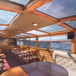 На борту однопалубного теплохода «Одиссей» есть все необходимое для комфортного времяпрепровождения, мебель и посуда для банкетов и фуршетов. Салон выполнен в теплых тонах с деревянной отделкой, создает обстановку дорогого ресторана, а панорамный обзор позволяет украсить праздник романтичными пейзажами. На борту имеется современная уборная, кухня для обслуживания банкетов и барная зона. Для ночных путешествий на судне имеются тёплые пледы. Для танцевальных вечеринок на теплоходе установлена акустическая система.