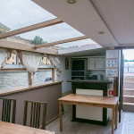 Наслаждайтесь путешествием под открытым небом или проведите время в крытом салоне, оборудованном современной и стильной мебелью. Шикарная обстановка располагает к проведению торжественных и тематических мероприятий на любой вкус. Интересная подсветка потолка и оригинальное оформление закрытой палубы придётся по душе даже самым требовательным гостям.