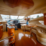 Кают-компания, обшита натуральным деревом и, конечно же, стильно обставлена и оборудована всем необходимым по последнему слову техники. Лодка отличается просторностью, и позволит вам и вашим гостям чувствовать себя свободно.