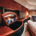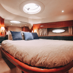 На борту яхты «Princess 57 FT» находятся 3 комфортабельные каюты, просторный салон, полноценная кухня с барной стойкой и санузел. Судно оснащено системами кондиционирования, поэтому погода не сможет испортить отдых. На фоне яхты получаются атмосферные фотографии. Можно устроить фотосессию для социальных сетей.