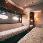 В гостевых каютах имеются двуспальные кровати, климатические установки, обеспечивающие охлаждение в жаркую погоду и обогрев – в прохладную. Постельное белье предоставляется. Также не придется беспокоиться о средствах личной гигиены и домашних мягких тапочках: они имеются на борту для каждого клиента. Поскольку яхта оснащена всем необходимым, заказать ее удобно как на несколько часов, так и на сутки.