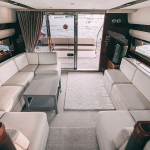 Небольшая снаружи, но просторная внутри яхта «Принцесса» удивляет своей функциональностью. Судно имеет 3 каюты, оснащенные ванными комнатами. В просторном флайбридже с тентом размещены диваны и столик для удобных посиделок на свежем воздухе в тени. Бар с холодильником и камбуз с необходимым оборудованием для приготовления пищи дополнят праздничную атмосферу или просто экскурсионную прогулку приятным меню.