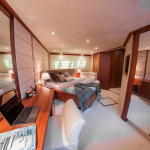 Аренда яхты «Sunseeker 70 Manhattan» — отличный способ отдохнуть от городской суеты в роскошных условиях. На борту могут одновременно разместиться до 14 гостей. Для ночевки и отдыха воспользуйтесь комфортабельными каютами, оборудованными мягкой мебелью.