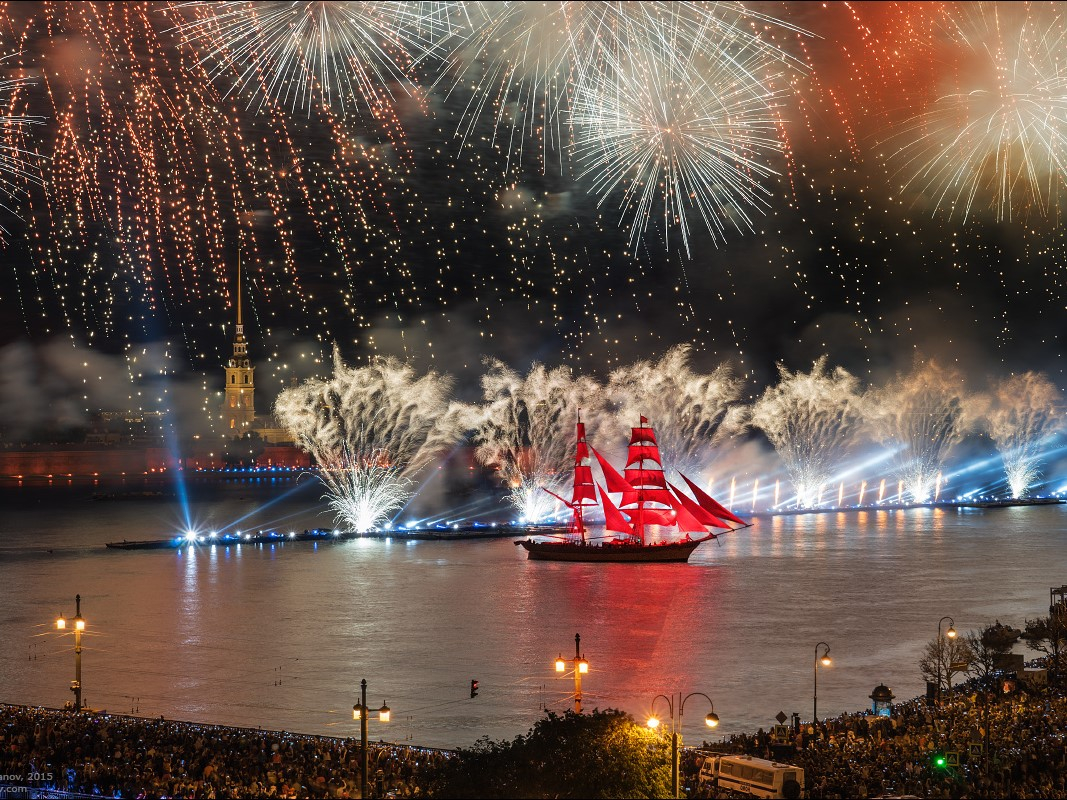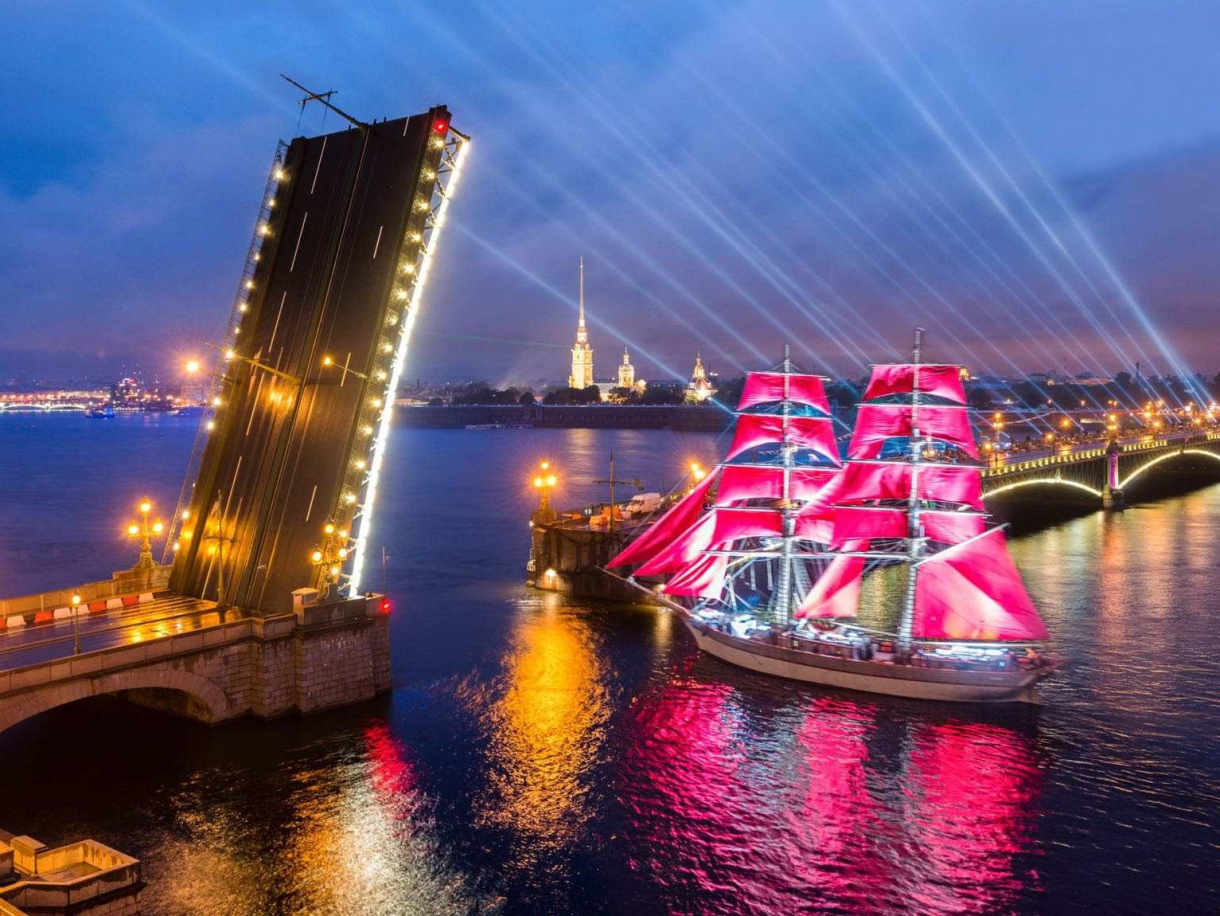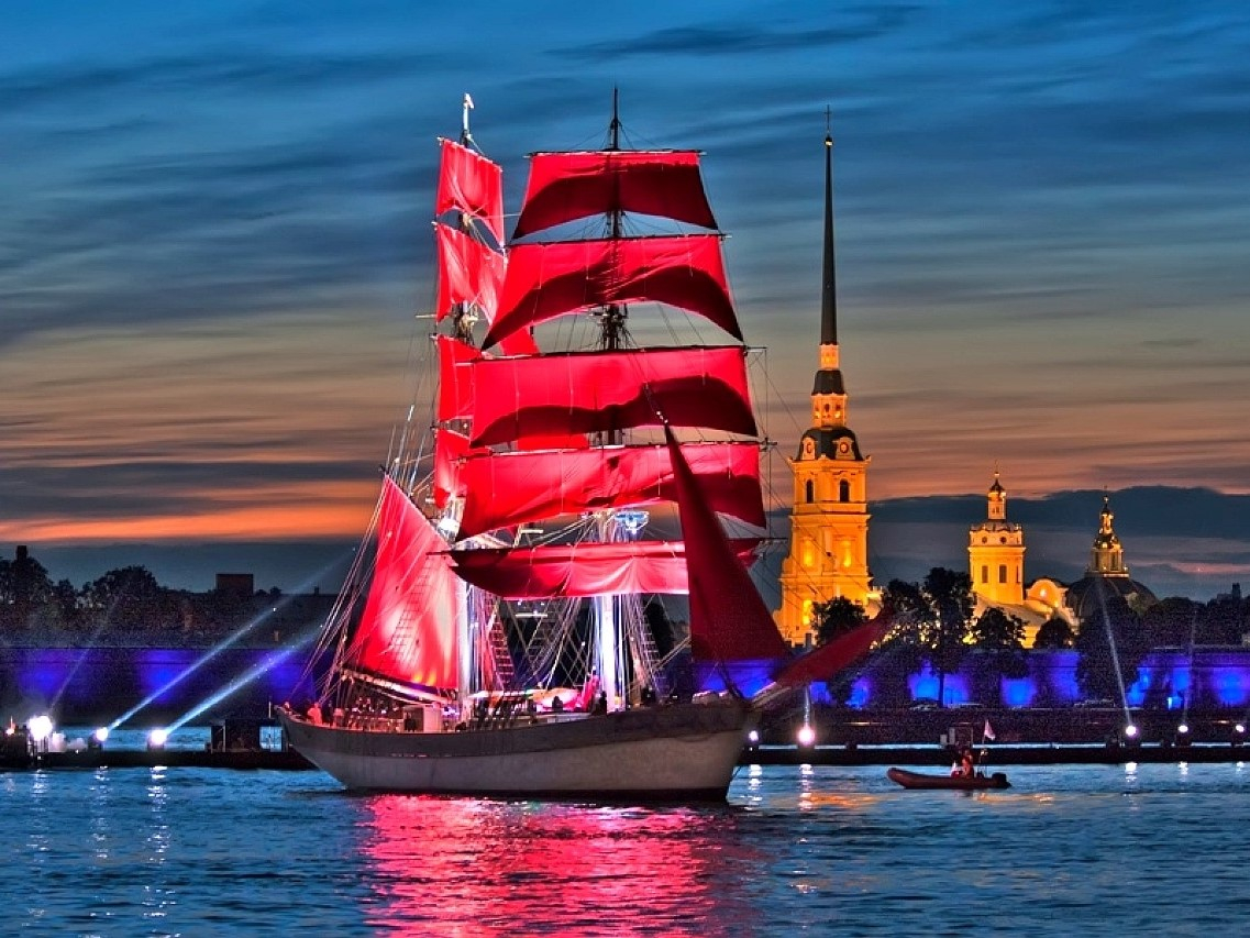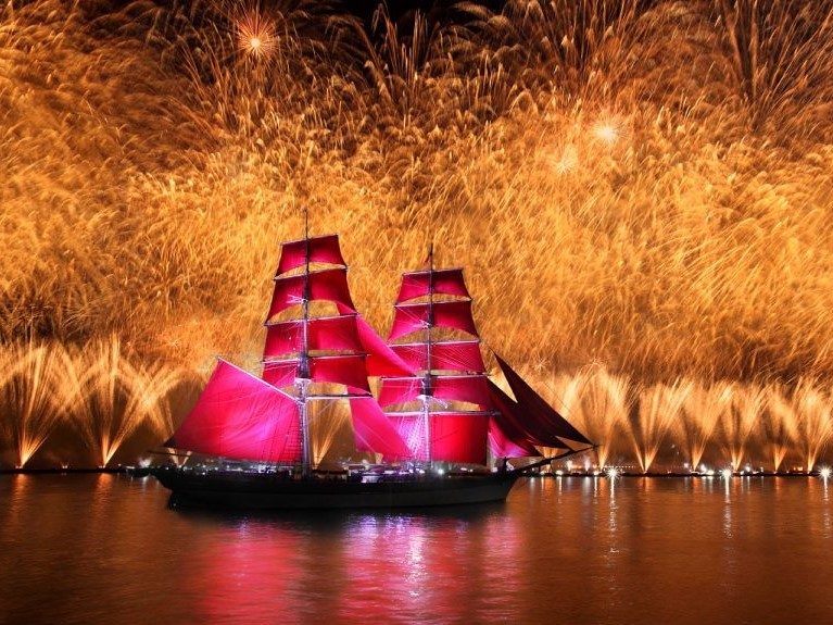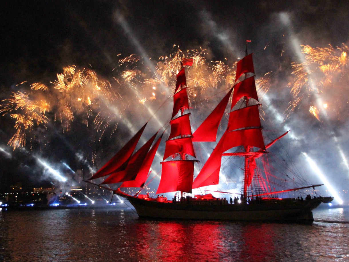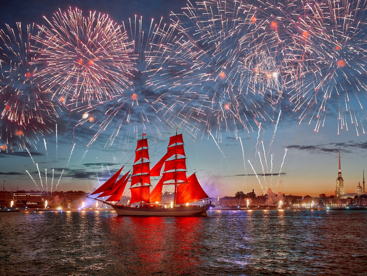 Каждый год сотни выпускников провожают уходящее детство под залпы салюта над алыми парусами корабля — символа самого яркого и романтичного праздника Петербурга — «Алые паруса». В эту светлую ночь небо над Невой озарится множеством огней. Подарите себе незабываемые впечатления, наслаждаясь масштабным праздником на воде!